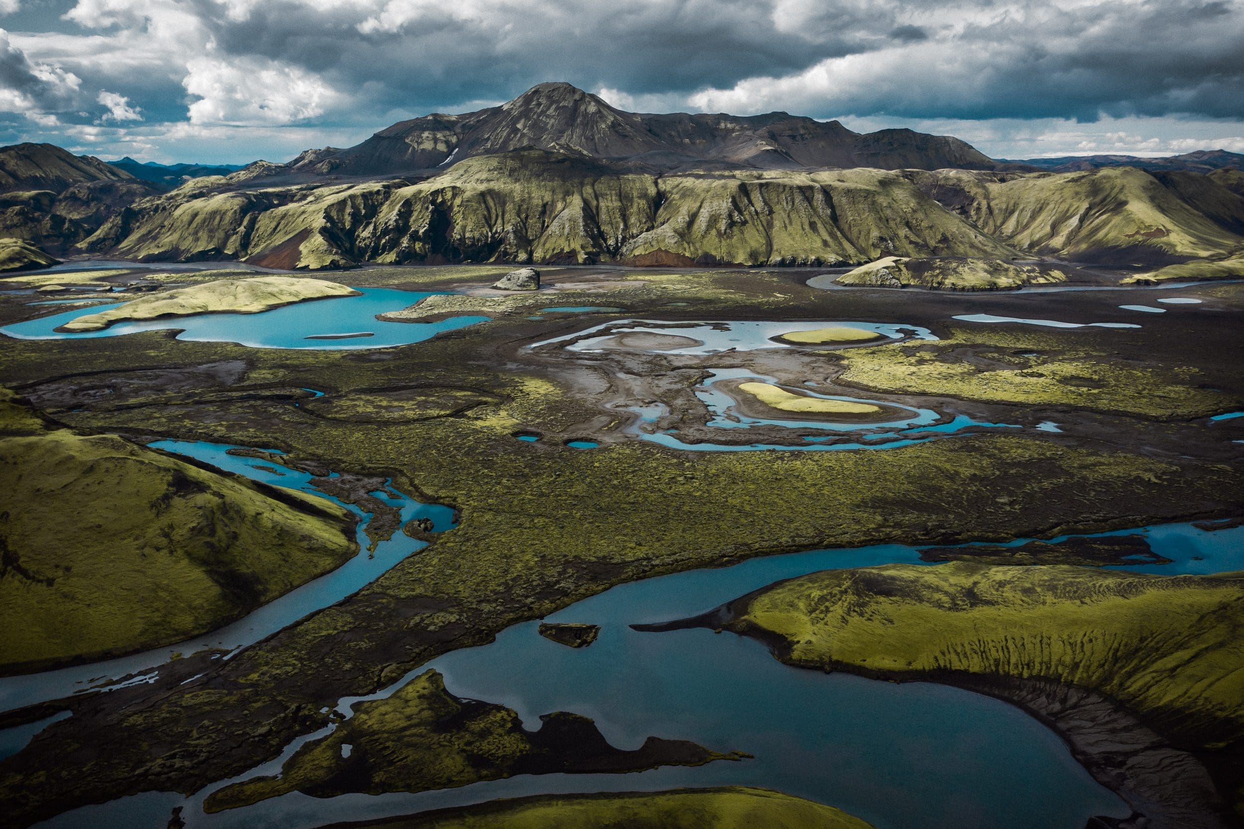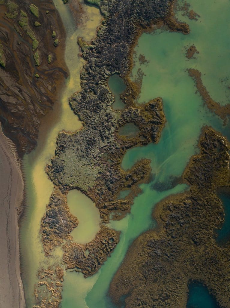 Au-delà des points de vue offerts par les nombreux reliefs qu’offre l’Islande, l’usage d’un drone offre une grande liberté dans la création d’images aux angles de vue nouveaux. Il est important de souligner que l’usage des drones est règlementé sur de nombreux sites à travers le pays, et que toutes les images présentées ici sont prises dans le respect des règles, incluant l’obtention de permis le cas échéant. Les grandes étendues des hautes terres restent un espace propice à l’usage du drone tout en limitant les perturbations auprès des visiteurs ou de la faune sauvage.